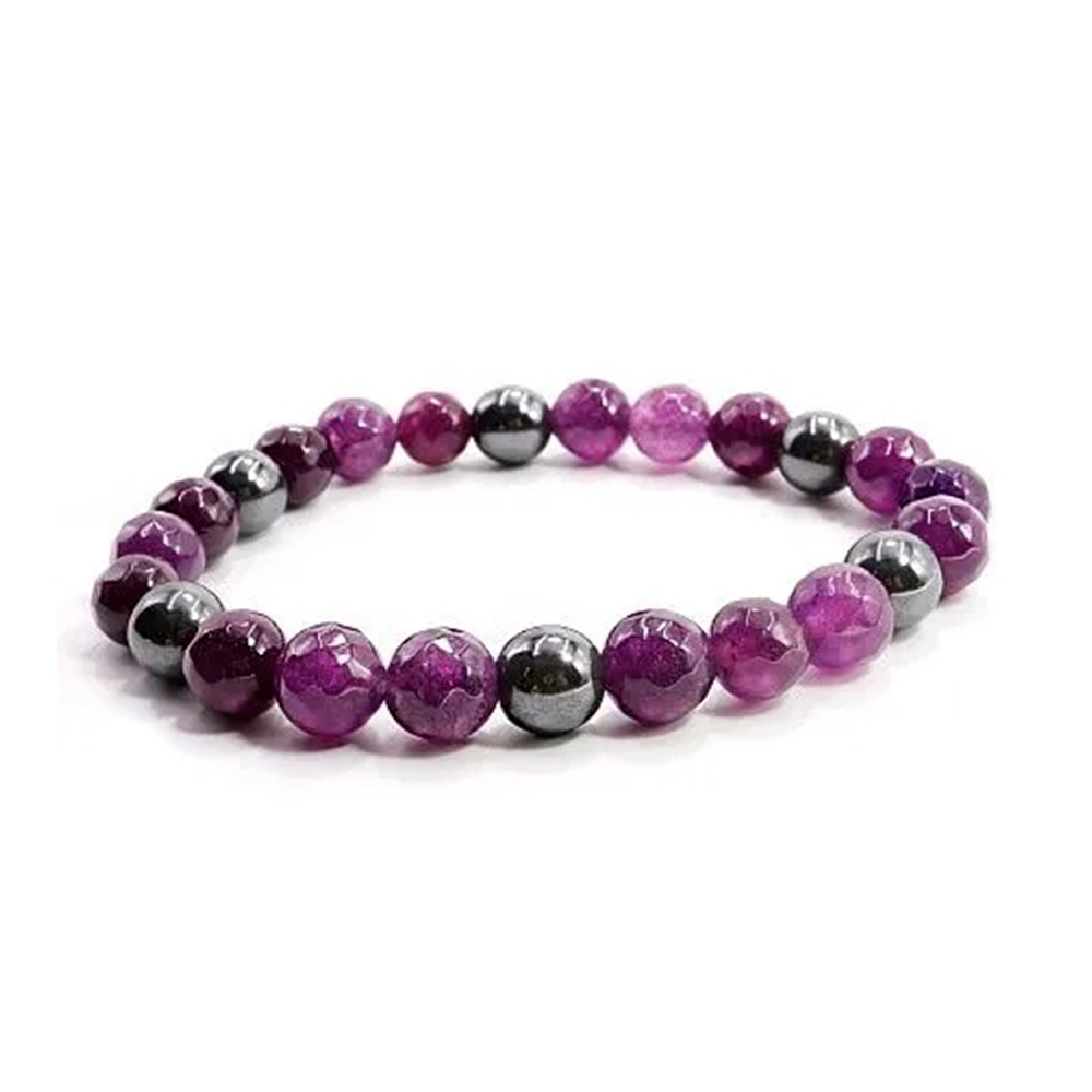 Браслет из камня Фиолетовый агат с гематитом и с огранкой привлекает энергии нечаянной радости 8мм