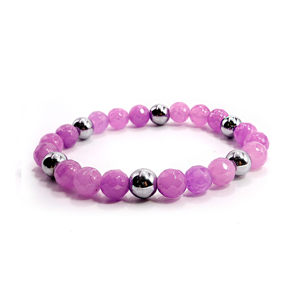 Браслет из камня Лавандовый аметист с гематитом и с огранкой символ крепкой любви и верности 8мм