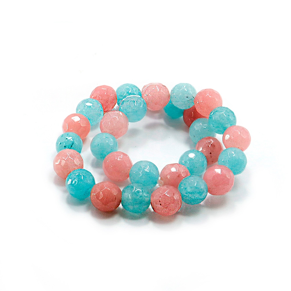 Браслет из камня с огранкой Розовый кварц и аквамарин привлекает любовь 6мм