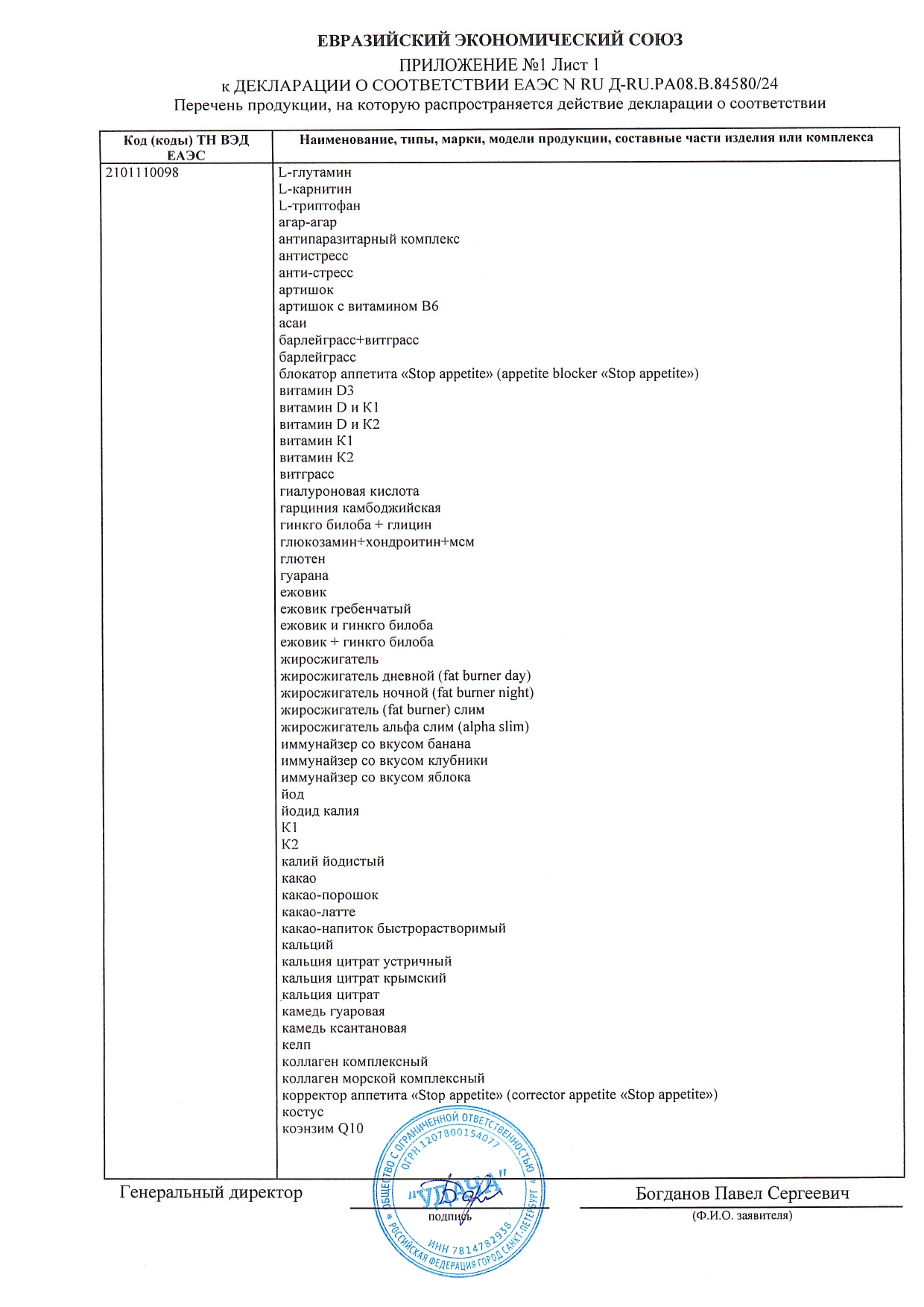 Микрокристаллическая целлюлоза, экстракт эмблики (амлы), псиллиум порошок, экстракт семян пажитника, экстракт гвоздики, экстракт хвоща полевого, экстракт крушины, экстракт аниса, экстракт листа грецкого ореха, экстракт артишока, имбирь порошок, экстракт тысячелистника, корица порошок, чеснок порошок, экстракт солодки, диоксид кремния (антислеживающий агент), магниевая соль стеариновой кислоты (стеарат магния, антислеживающий агент)