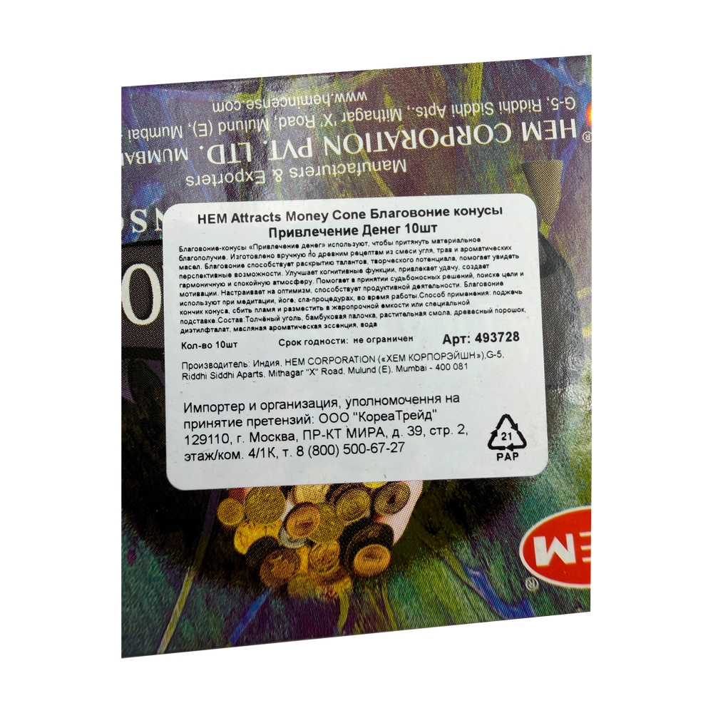 HEM Attracts Money Cone Благовоние конусы Привлечение Денег 28г