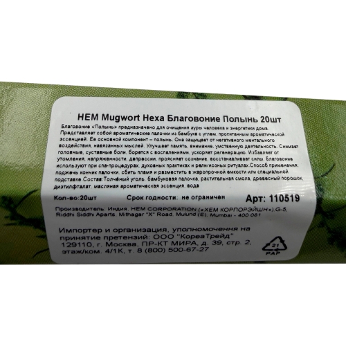 HEM Mugwort Hexa Благовоние Полынь 49г