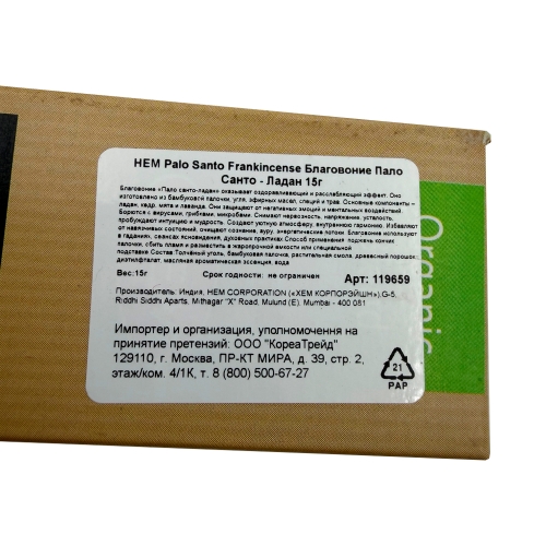 HEM Palo Santo Frankincense Благовоние Пало Санто - Ладан 15г