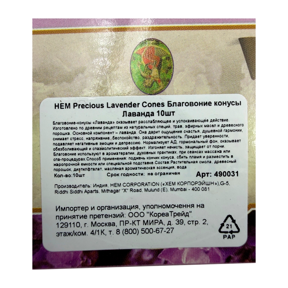 HEM Precious Lavender Cones Благовоние конусы Лаванда 28г