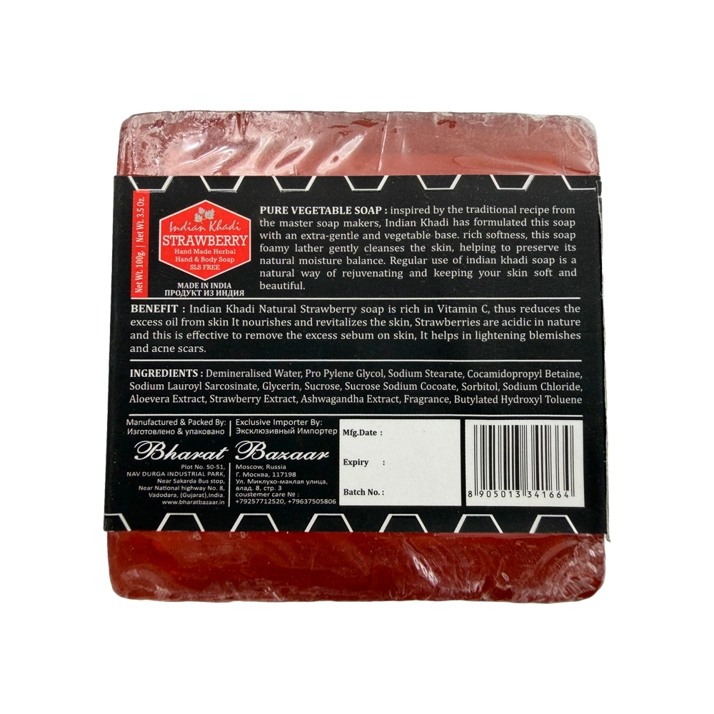 Натуральное мыло INDIAN KHADI с ароматом клубники создано на основе традиционной аюрведической формулы. В составе нет агрессивных ПАВ, искусственных пенообразователей и синтетических отдушек.