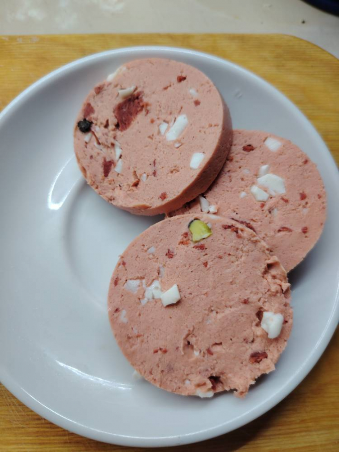 Вареная колбаса Мортаделла – веганский продукт, который по вкусу не отличается от своего мясного аналога. Она изготовлена на основе пшеничного белка, с добавлением специй, придающих легкую остринку, и фисташек, дополняющих вкус ореховыми нотками. Не содержит продуктов животного происхождения, ГМО, состоит только из растительных компонентов.