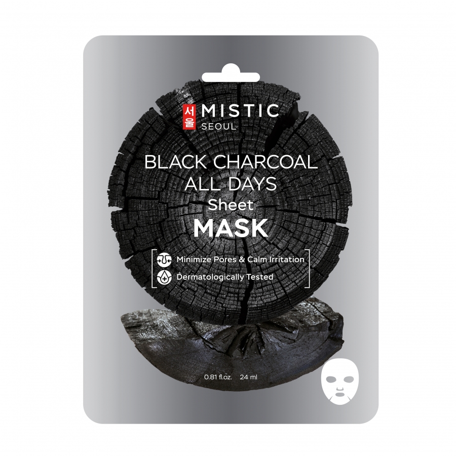MISTIC BLACK CHARCOAL 7 DAYS Sheet mask Тканевая маска для лица с древесным углём 24мл