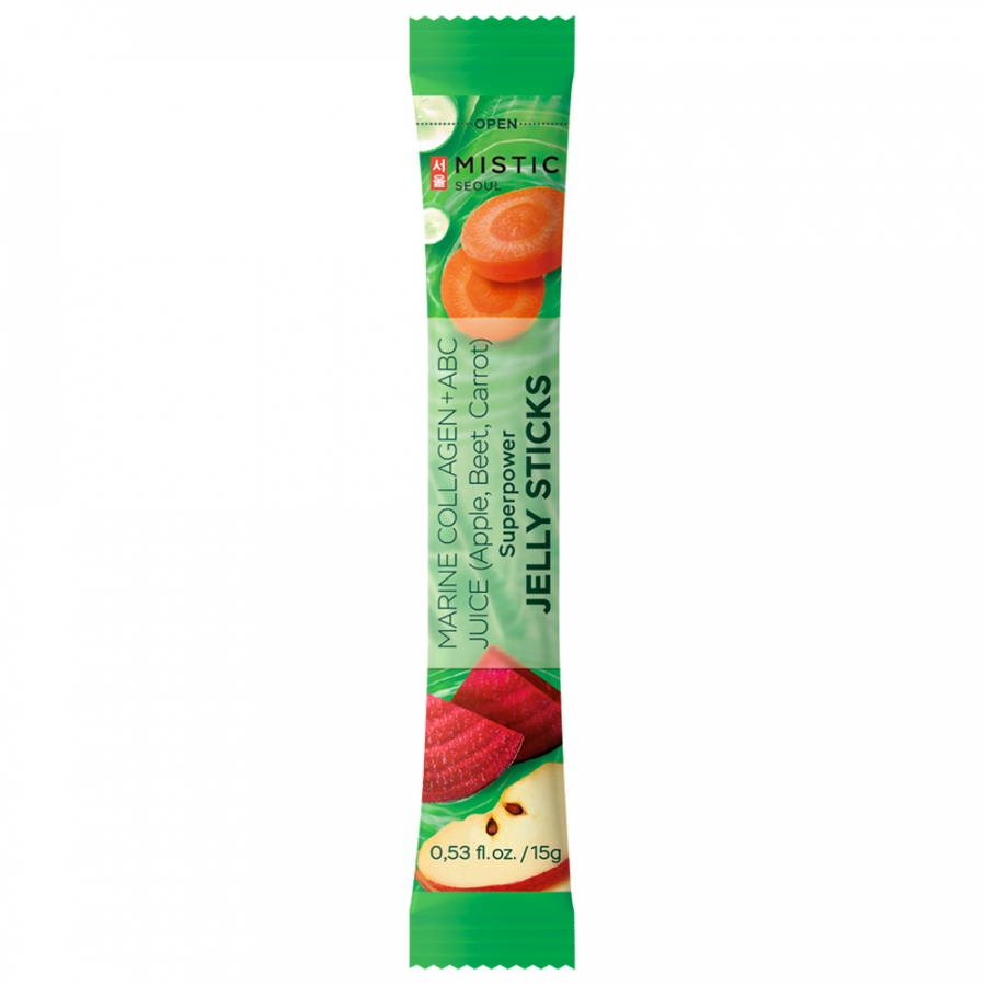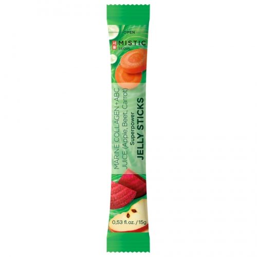 MISTIC Marine Collagen + Abc Juice (Apple, Beet, Carrot) Superpower Jelly Sticks Натуральный коллаген в желе с соком яблока, моркови и свеклы 1шт. х 15г