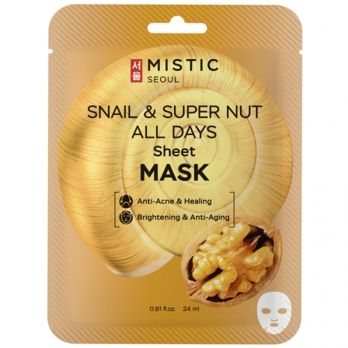 MISTIC SNAIL & SUPER NUT ALL DAYS Sheet MASK Тканевая маска для лица с муцином улитки и экстрактом о