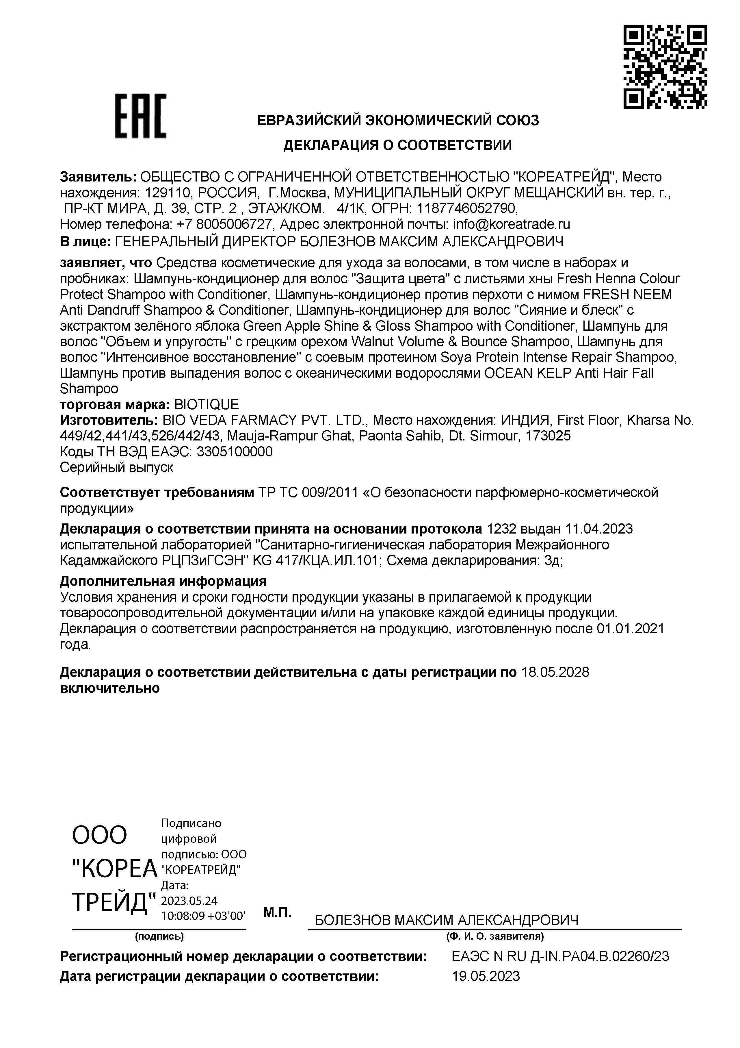 Питательный протеиновый шампунь для волос (BIO SOYA PROTEIN FRESH NOURISHING SHAMPOO) Biotique | Биотик 190мл