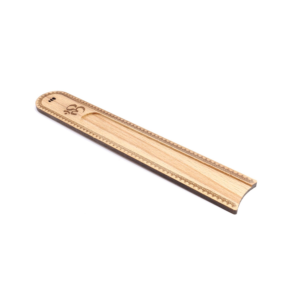 Подставка из массива бука вырезана в форме лыжи, что делает процесс окуривания более удобным. Узкая удлиненная форма удерживает благовоние под наклоном, позволяя пеплу падать строго на подставку, а не на стол.