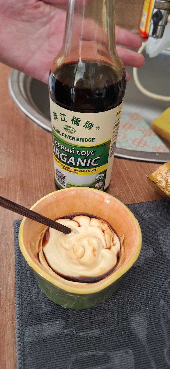 Вода, соевая мука Organic 27,4%б соль, пшеница Organic 6.6%, дрожжевой экстракт.