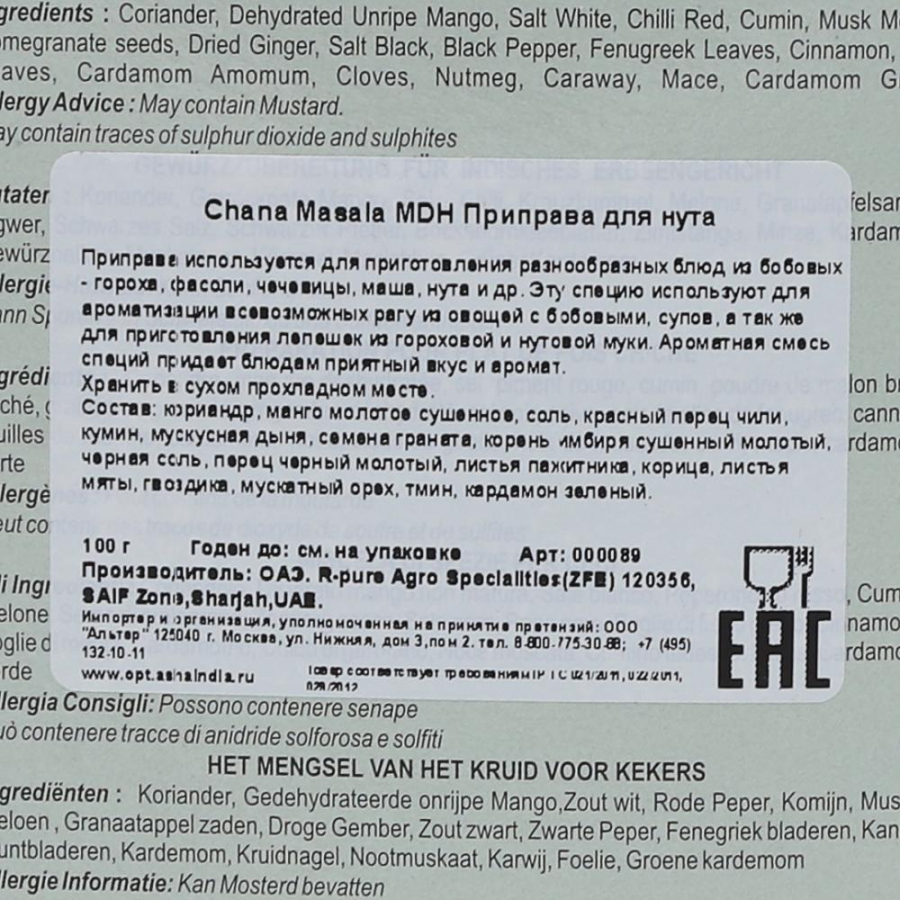 Приправа для нута (Chana masala) MDH | ЭмДиЭйч 100г