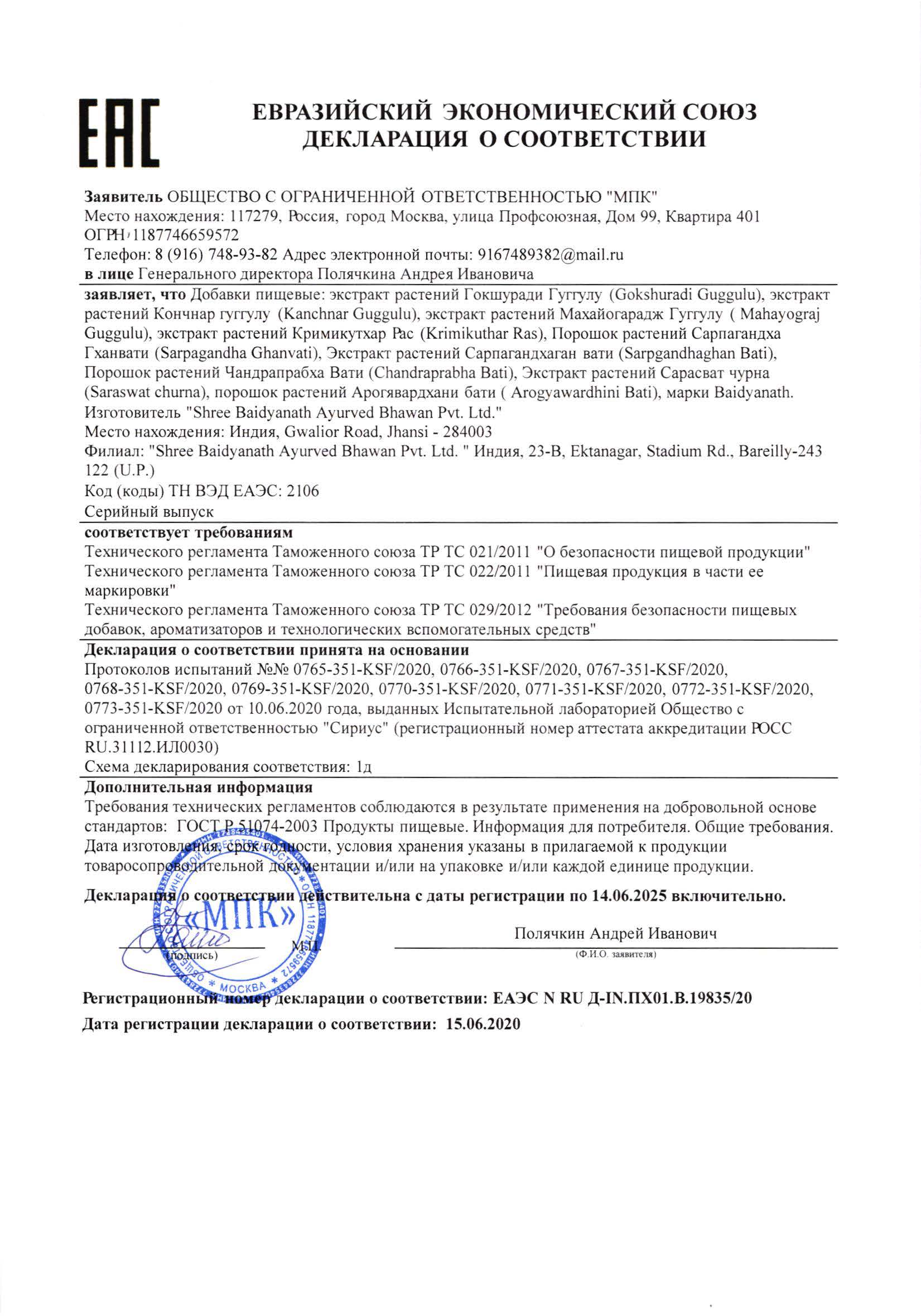Способ применения