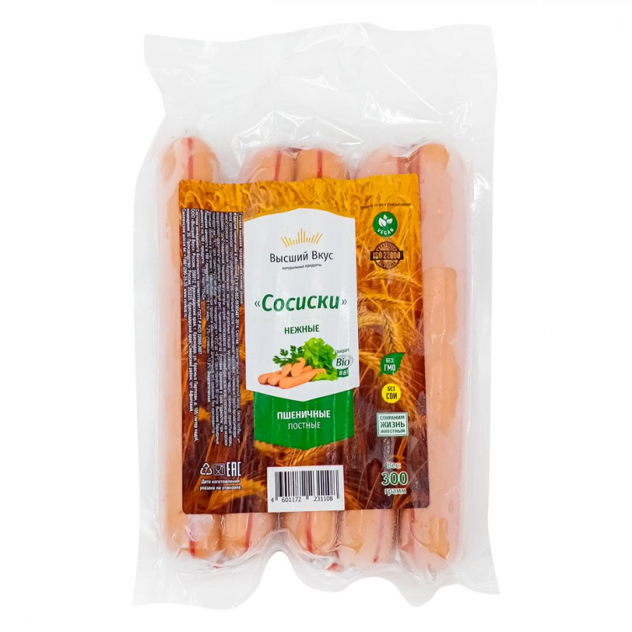 Вегетарианские сосиски Нежные (vegetarian sausages) Высший Вкус 300г