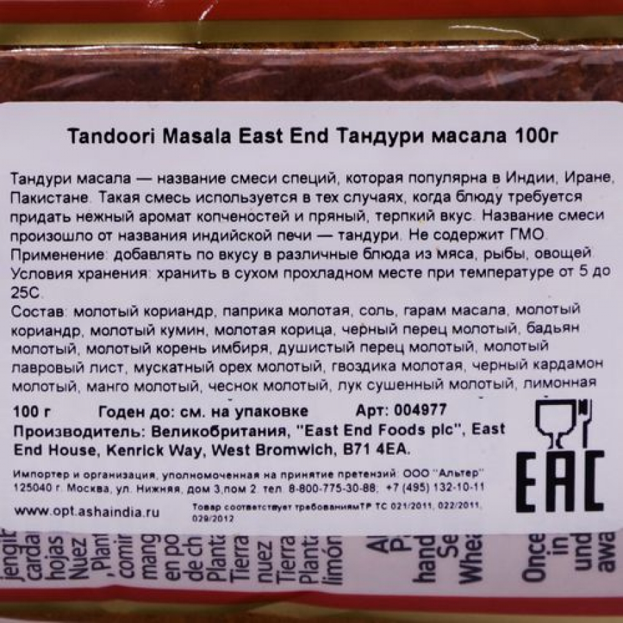Приправа Тандури (Tandoori masala) East End | Ист Энд 100г
