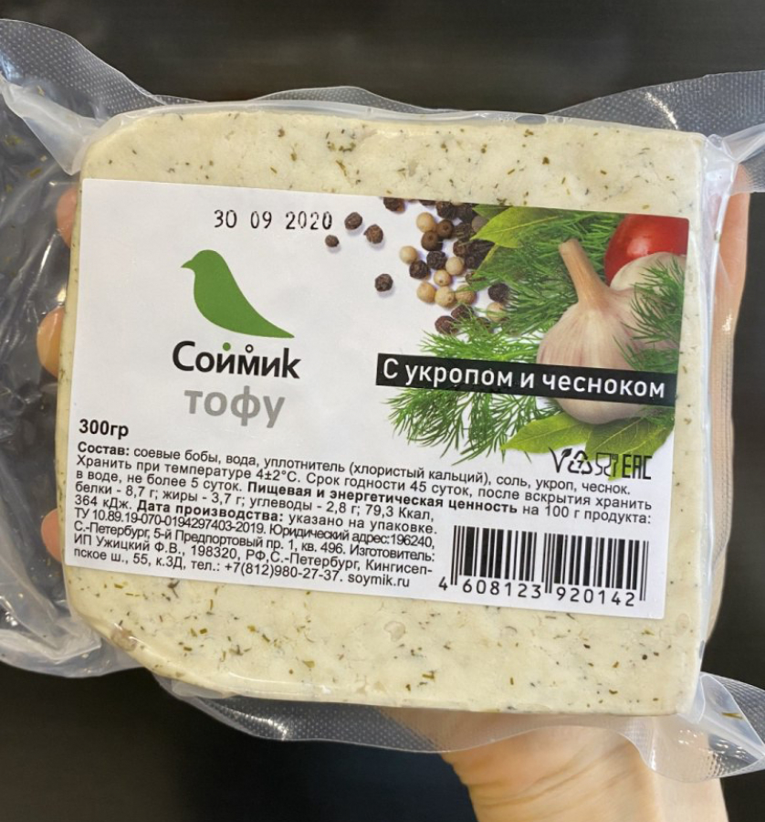 Тофу с укропом и чесноком (tofu with dill and garlic) Соймик | Soymik 300г