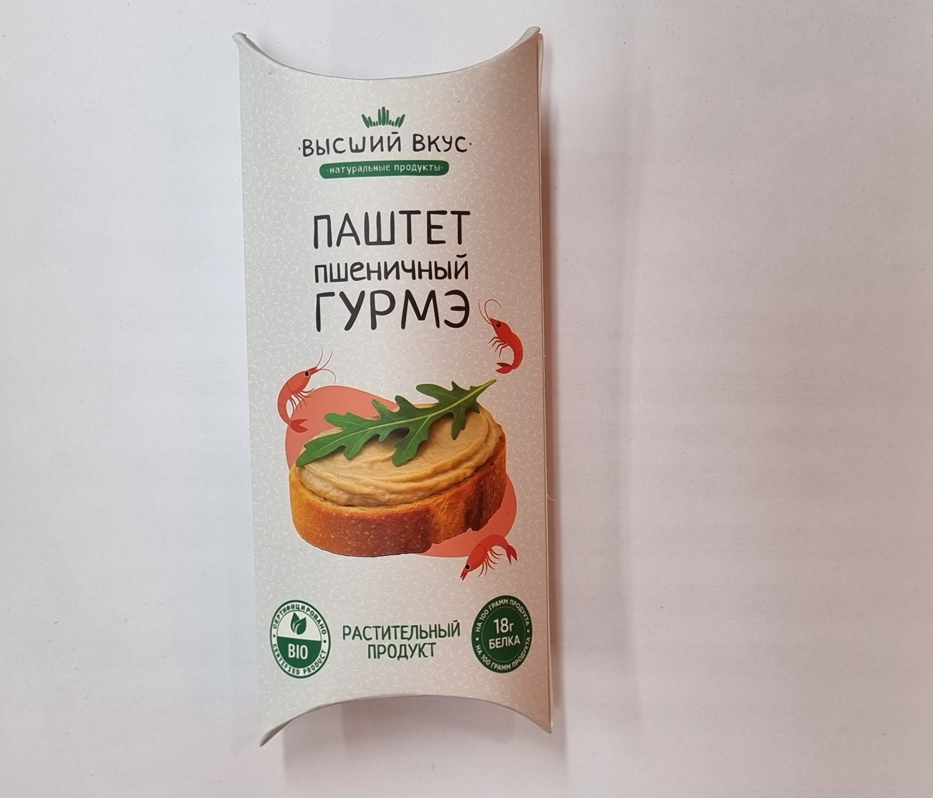 Веганский паштет «Гурмэ» от «Высший Вкус» со вкусом креветки — это современная растительная альтернатива. Продукт весом 125 г создан на основе пшеничной клейковины и кокосового масла. Вкус и аромат креветки достигаются с помощью специального ароматизатора, а текстуру формируют натуральные загустители. В составе также присутствуют соль, натуральные красители и антиокислители для сохранения свежести и качества продукта.