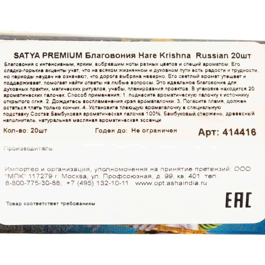 Благовония Hare Krishna Russian помогают обрести спокойствие, очищают ауру и помещение от негативной энергии, способствуют получению божественной поддержки.